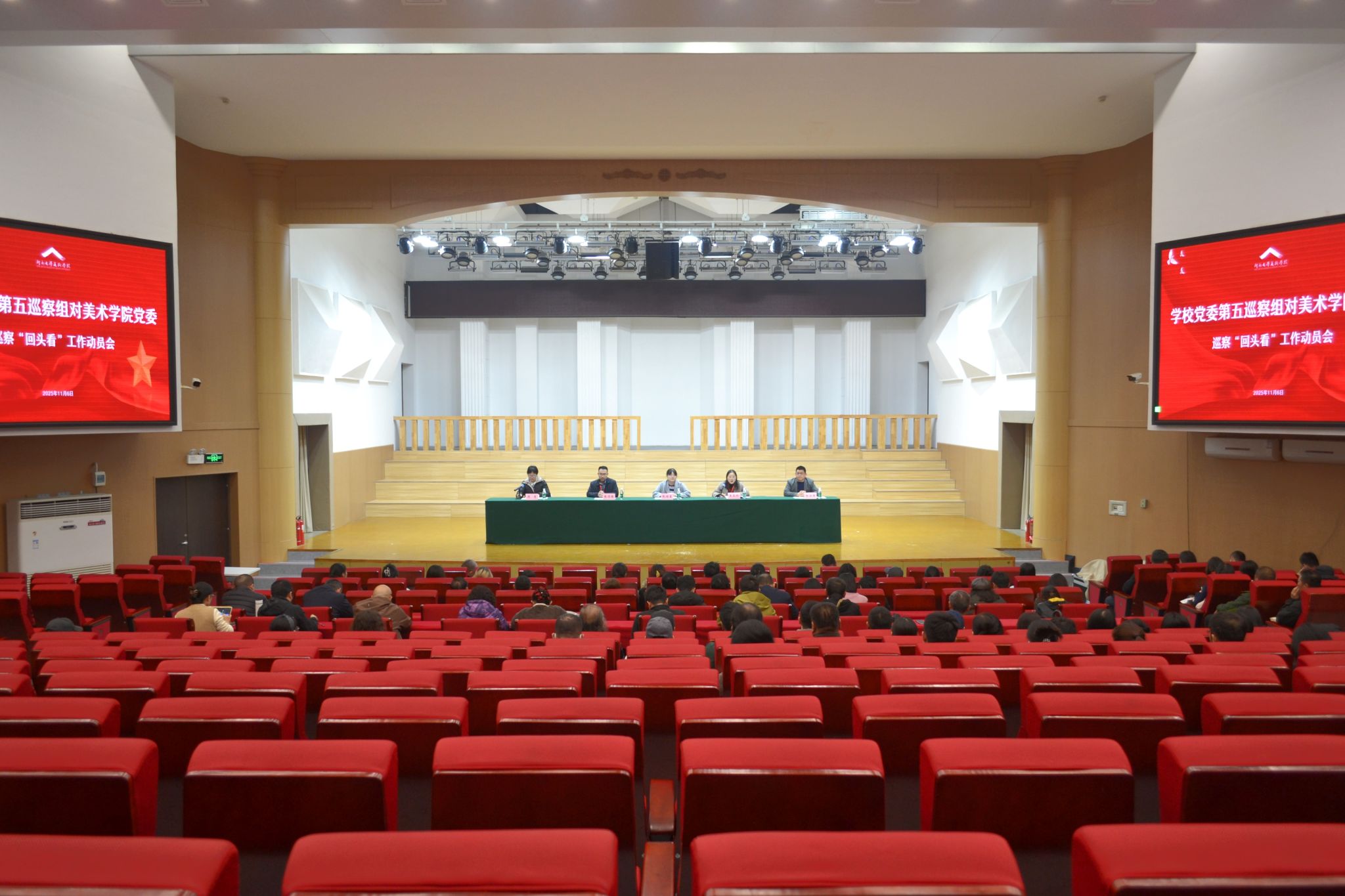 按照学校党委巡察工作统一部署,11月6日下午,校党委第五巡察组召开巡察“回头看”美术学院党委工作动员会。校纪委监察专员办公室综合室副主任、党委巡察工作办公室副主任张熠星,校党委第五巡察组组长王玉珍及全体组员,美术学院领导班子,教职工代表及学生代表参加动员会。会议由美术学院党委副书记周青主持。