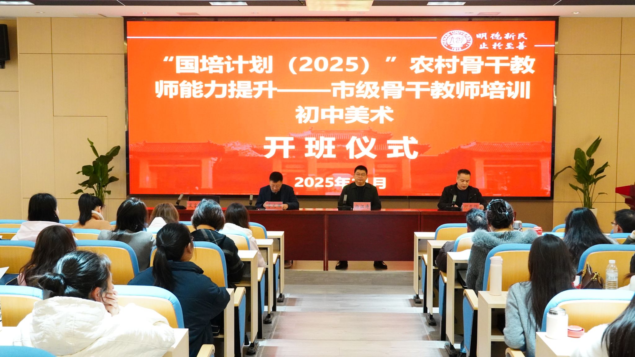 11月6日上午,“国培计划(2025)农村骨干教师能力提升——市级骨干教师培训初中美术开班仪式”在河南大学美术学院艺术楼405教室举行。河南大学美术学院党委书记杨江涛、副院长李龙国,培训班主任李广胜、陈艳霞出席,仪式由美术学院成教办主任郑龙强主持。杨江涛在致辞中首先代表学院向全体学员表示热烈欢迎。他提到,河南大学作为国家“双一流”建设百年学府,具备深厚的文化底蕴与雄厚的学科实力,而美术学院自创办以来,始终深耕艺术教育领域,在教学、创作与研究方面成果丰硕,这为本次国培计划提供了坚实保障。为此,杨江涛教授寄语学员,希望大家主动交流、深耕细研,在专业能力与教学素养上实现双重提升,为推动基层艺术教育高质量发展注入新的活力。李龙国在班级会议上正式宣读新一届班委名单后,随即聚焦培训期间的纪律执行与安全保障工作作出重点部署,鉴于本次培训住宿地点设置在校外,人员活动范围较广且周边环境相对复杂,他强调安全是学习的基础和底线,提出要确保人身安全、财产安全和交通安全三点注意事项,在保障身心安康的前提下全身心投入培训,确保学有所获、满载而归。学员代表季筱婉分享了参加培训的心得:课程内容从艺术技法的系统讲解到实践创作的细致指导,让大家明确了美术教学中需兼顾技能传授与文化审美引导的要求,此次培训为课堂教学提供了新思路,并期待后续继续深入学习,助力艺术教育发展提升。开班仪式结束后,全体参会人员移步教学楼前合影留念。至此,本次“国培计划”培训活动正式拉开帷幕。