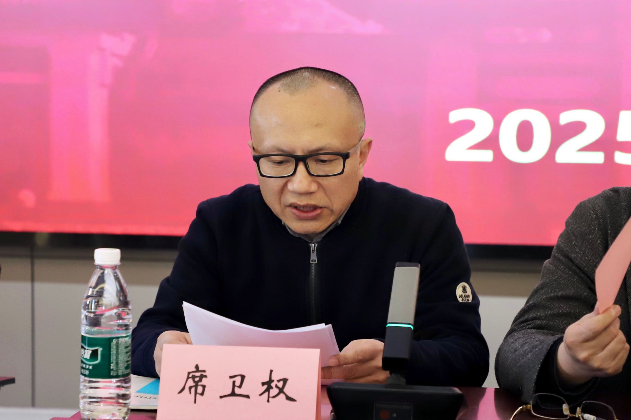 席卫权作了题为《执奋进之笔,绘时代新卷——谱写学院高质量发展新篇章》的工作报告。报告全面总结了学院2024年以来在党建引领、教学育人、学科科研、艺术创作等方面取得的跨越式发展,特别是在科研立项、国家级展赛等方面取得了历史性突破。站在“十五五”规划的新起点上,他进一步明确了学院未来发展方向:将深入推进本科教学改革与AI技术融合,强化研究生培养,深化人事绩效改革,为学院新一轮高质量发展注入强劲动力。