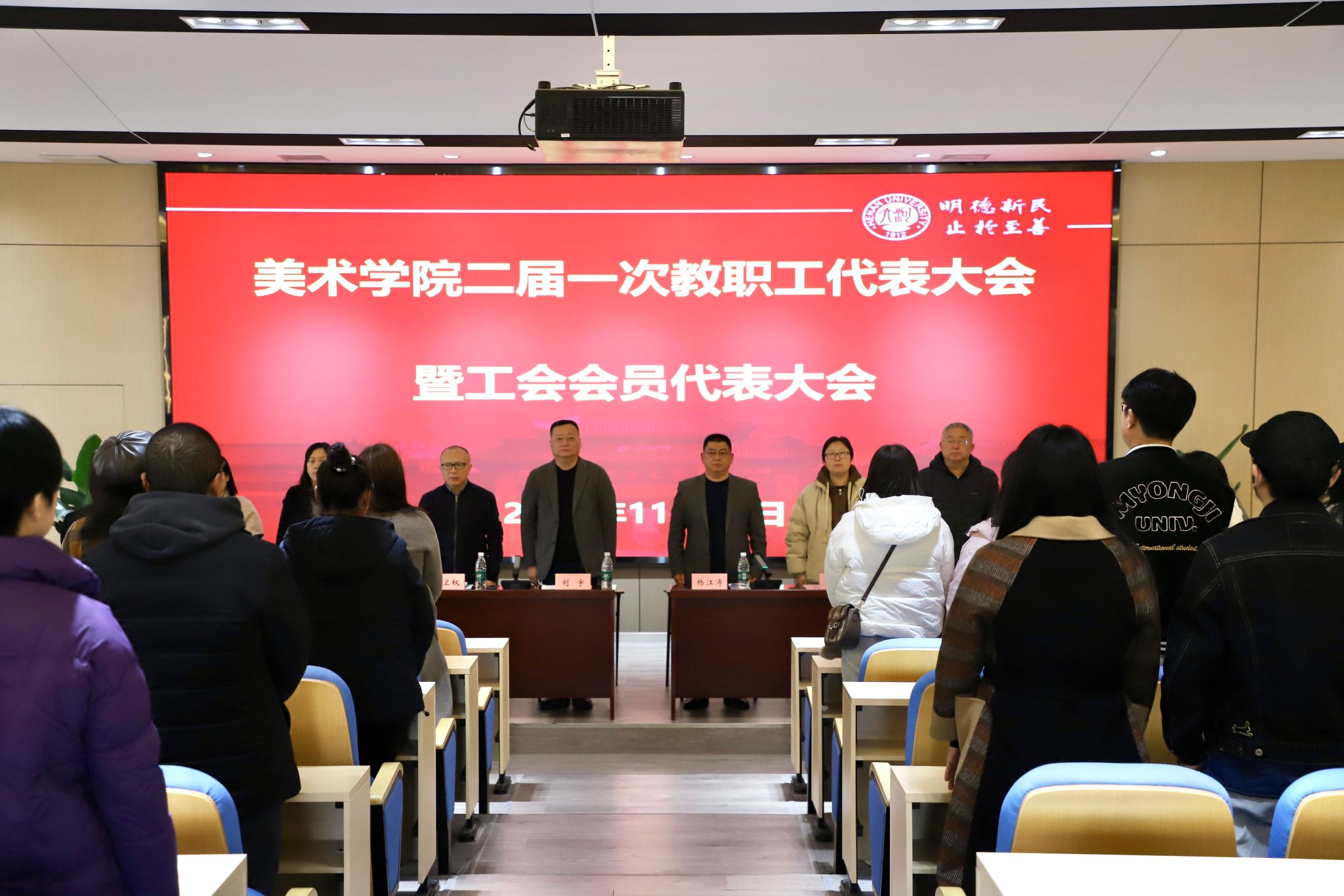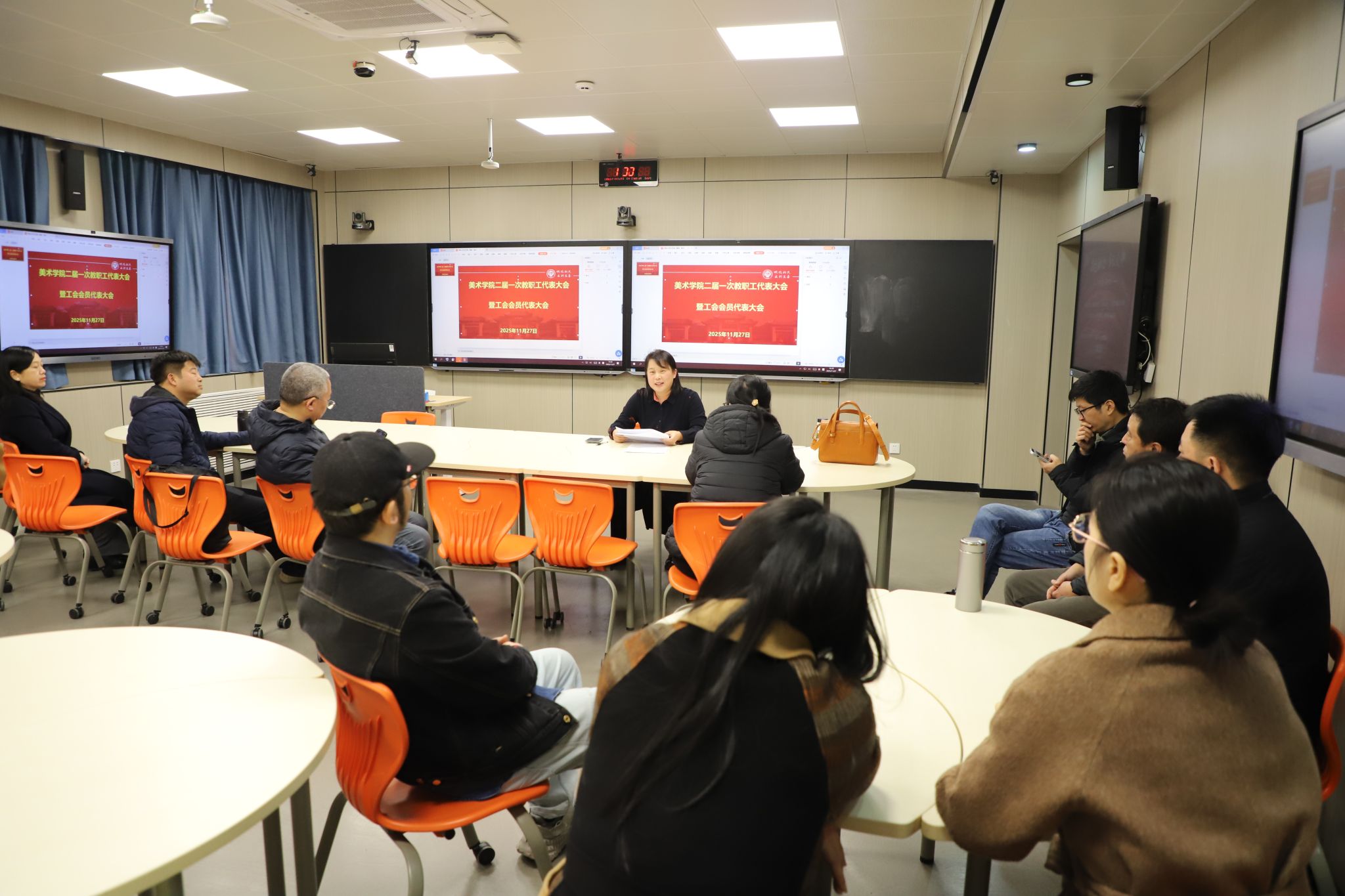 11月27日下午,美术学院二届一次教职工代表大会暨工会会员代表大会在学院405报告厅召开。校工会副主席刘宇,美术学院党委书记杨江涛,美术学院院长席卫权,院党委副书记周青,副院长马利霞、王圣松、李龙国,河南大学公共艺术教研部主任肖海英及教职工代表参加会议。活动由杨江涛主持。大会在庄严的国歌声中开幕。刘宇代表校工会对大会召开表示祝贺。他表示,在河南大学锚定“研究型综合性国际化一流大学”总目标、踔厉奋发提质进位的关键时期,美术学院在科学研究、人才培养、文化传承、社会服务及国际交流等方面取得了丰硕成果,为学校高质量发展注入了蓬勃生机。他特别肯定了学院工会打造的“有温度、有特色、有活力”的“教工之家”,有效提升了教职工的归属感与幸福感。他指出,当前二级工会的重要使命是推动“双代会”规范创新,引导教职工投身学校事业发展,并期望美术学院工会能继续弘扬“自信、拼搏、开放、创新”的河大精神,凝聚起更强大的发展合力。席卫权作了题为《执奋进之笔,绘时代新卷——谱写学院高质量发展新篇章》的工作报告。报告全面总结了学院2024年以来在党建引领、教学育人、学科科研、艺术创作等方面取得的跨越式发展,特别是在科研立项、国家级展赛等方面取得了历史性突破。站在“十五五”规划的新起点上,他进一步明确了学院未来发展方向:将深入推进本科教学改革与AI技术融合,强化研究生培养,深化人事绩效改革,为学院新一轮高质量发展注入强劲动力。周青作了题为《聚焦思想引领,践行实干初心——为学院高质量发展聚力赋能》的工会工作报告。她从强化思想引领、聚焦中心工作、深化服务保障、丰富文体活动、加强自身建设等五个方面,总结回顾了学院工会的主要工作,肯定了工会在凝聚共识、搭建平台、传递温度等方面发挥的重要作用。同时,报告指出了目前存在的问题与不足,并对2026年的工会工作进行了展望。接着,李龙国、马利霞、肖海英分别作了《美术学院2024年以来经费使用情况报告》《美术学院2024年以来工会会费收缴使用情况报告》《美术学院提案工作报告》。大会进入第二阶段,各分团审议了各项工作报告。代表们充分肯定了美术学院2024年以来取得的成就,并围绕教学改革创新、师资队伍建设、管理服务保障等师生关心的问题展开热烈讨论,积极为学院未来发展建言献策,充分履行了民主权利,凝聚了发展共识。随后,郑龙强、郭建慧分别宣读了《关于学院工作报告的决议(草案)》与《关于工会工作报告的决议(草案)》。大会一致通过两个报告决议。大会进行了美术学院二届工会委员会选举工作。副院长王圣松宣读了选举办法,随后选举产生了新一届委员,通过了女职工工作小组、提案工作小组名单。杨江涛作总结讲话。他指出,本次大会是凝聚共识、团结胜利的大会,与会代表们尽显责任感与担当精神。2024年以来,学院工会充分发挥桥梁纽带作用,务实履职,为学院高质量创新发展奠定了坚实的基础。他表示,新当选的工委委员兼顾经验与活力,并对大家寄予厚望。他希望工会工作要融入学院发展全局,维护教职工权益、搭好建言献策平台,以“职工之家”建设为目标,丰富活动内容,提升群众获得感。新任委员需加强学习,提升工作专业化水平。最后,他呼吁大家全力支持学院各项工作,以主人翁的姿态,立足本职再创佳绩,共同维护学院安全稳定,携手推动学院繁荣发展。最后,大会在悠扬的《河南大学校歌》声中落下帷幕。