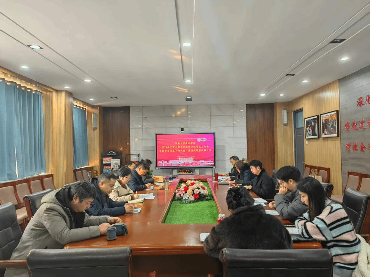 为扎实推进基层党组织建设,以高质量党建引领学院事业高质量发展,1月23日上午,河南大学美术学院在学院一楼会议室召开2025年度党支部书记述职评议考核工作会暨校党委巡察“回头看”反馈问题整改推进会。学院党委委员、各党支部书记参加会议。会议由学院党委副书记周青主持。