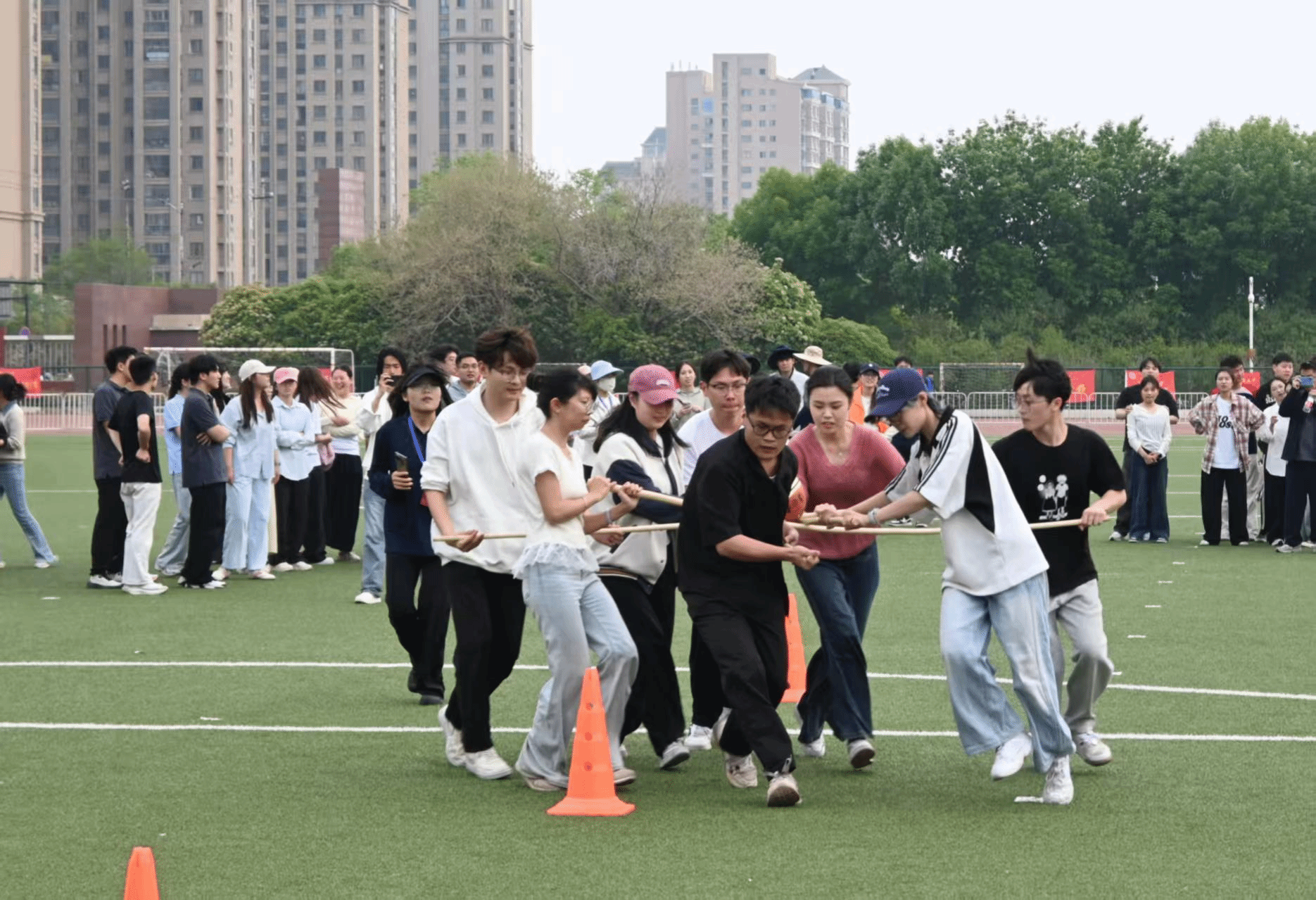 以协作凝聚力量,用同心奔赴荣光。赛场上从无独行之勇,唯有并肩之情——棍影交错间的默契配合,围圈守护时的同心协力。这些瞬间,汇聚成青春最耀眼的光芒;这些身影,定格成赛场最动人的风景。呐喊声仍在耳畔激荡,灿烂的笑颜依旧在春风中绽放,美院学子以同心共济的姿态践行体育精神,用携手并进的热忱书写青春答卷。