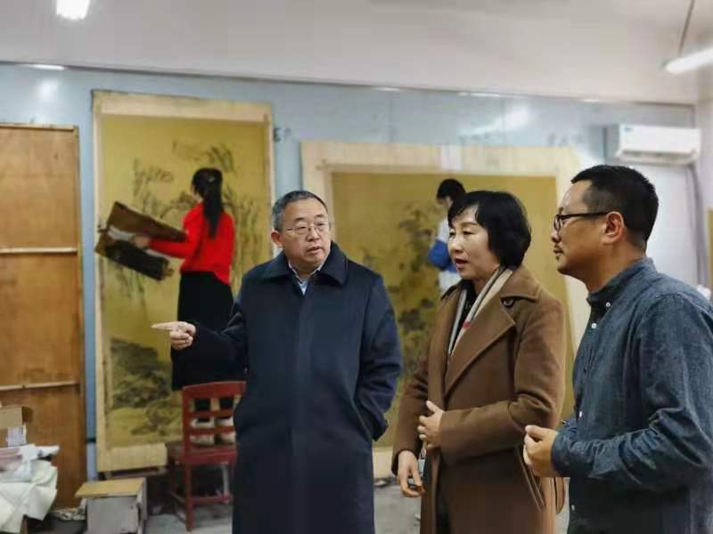 9:00沈洁霞来到国画专业中国画教室,亲切慰问正在作画的老师和学生,询查了学习过程中各个阶段的重点要素,并就宋画山水画与老师和同学们进行了深入探讨。
