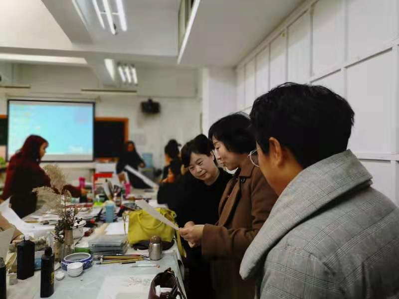 沈洁霞到美术学院调研 为进一步推进“不忘初心、牢记使命” 主题教育,12月17日,校党委常委、工会主席沈洁霞一行到美术学院走访调研。美术学院院长席卫权、党委副书记胡春贞、副院长王圣松等陪同参加了相关活动。 上午8:00沈洁霞来到艺术楼617教室,全节听取了2017级美术教育专业技能课,了解上课学习情况,并与授课老师及同学们进行了亲切的交流。 9:00沈洁霞来到国画专业中国画教室,亲切慰问正在作画的老师和学生,询查了学习过程中各个阶段的重点要素,并就宋画山水画与老师和同学们进行了深入探讨。 随后,沈洁霞出席参加了书法专业研究生中期汇报展开幕式,并认真观看了展览。 沈洁霞指出,中国传统文化中蕴含着丰富的艺术教育资源,我们可以汲取传统文化中的艺术精华、精神积淀、审美情趣,通过在美术教学中渗透传统文化教育,而我们的中国画和书法是传统文化的瑰宝,希望大家真正落实好“课程思政”,在润物无声中充分发挥传统文化的育人功能。希望各位老师在教授传统美术专业知识和技能,能够不断推陈出新,要形成我们自己鲜明的特点,促进中国传统文化的传承和发展。希望美术学院认真调研,结合学科特点和实际情况,进一步凝练方向,凝聚力量,把我们的专业进一步做大做强,继续引领河南美术教育的发展,用扎实的学识为学院发展和学校双一流建设贡献更大的力量。