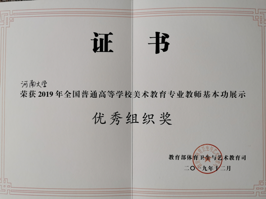 美院动态 | 我校教师在2019年首届全国普通高等学校美术教育专业教师基本功展示活动中荣获佳绩 由教育部主办,福建师范大学承办,教育部艺术教育委员会、中国艺术教育促进会协办的2019年全国普通高等学校美术教育专业教师基本功展示活动于12月27日—30日在福建师范大学旗山校区举行。 来自全国30个省(市、区)和新疆生产建设兵团68所高校的181位教师参加此次活动。展示活动分为实践组(造型表现类、设计应用类专业技能课程教师)和理论组(专业理论课程教师)两个组别,两个组别均设教学展示、专业能力展示、经典作品赏析三个项目。河南大学美术学院席卫权、洪涛、周春燕老师参加了此次比赛。 经过激烈的比赛,我校代表队取得优异成绩,斩获9项大奖:席卫权荣获理论组个人全能一等奖、理论组经典作品赏析单项奖、理论组教学展示单项奖、理论组专业能力展示单项奖;洪涛荣获实践组个人全能三等奖、实践组经典作品赏析单项奖、实践组教学展示单项奖;周春燕荣获实践组教学展示单项奖;河南大学荣获优秀组织奖。席卫权院长的课程在大会上是专家重点点评的优质课,我校美术教师扎实的基本功、通力合作的集体荣誉感获得了大赛评委和其他兄弟院校的认可与称赞。 自接到活动通知后,美术学院领导班子高度重视,迅速组建了专业的教师团队,由院长席卫权亲自挂帅并同时选拔了洪涛、周春燕等优秀骨干教师成立了参赛组,这些老师在繁忙的教学工作之余,挤出时间积极备战。此外美术学院杨江涛书记、胡春贞副书记、蔡玉硕副院长、公共艺术教研部彭西春主任、贾涛教授等为参赛老师精心点评、指导微课录制。 据悉,2018年10月,席卫权、成文光、肖海英、周春燕几位老师曾以辅导教师的身份带领美术学院三位学生到杭州师范大学参加首届全国普通高等学校美术教育专业本科生基本功展示大赛,我校学生成绩优异,斩获11项大奖。 本次活动,肖海英老师应邀担任教师基本功展示理论组评委,席卫权、周春燕老师又以参赛选手的身份参赛并获荣誉,再一次说明了我院教师较强的综合教学实力。
