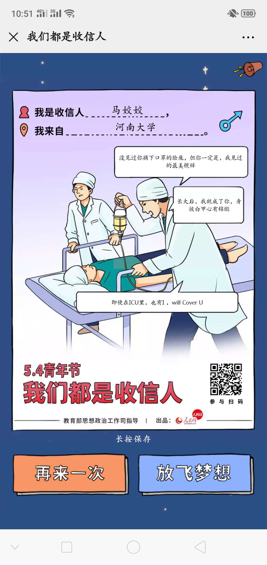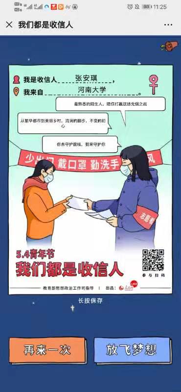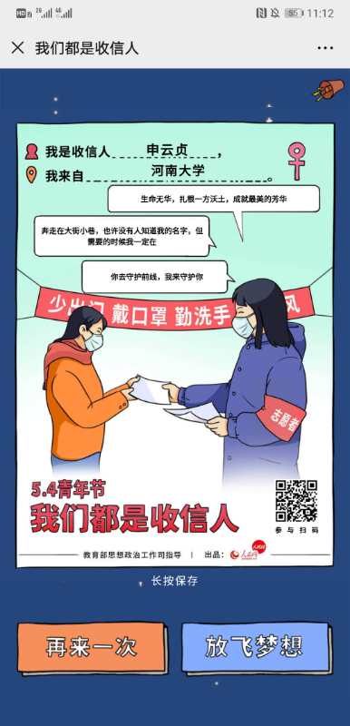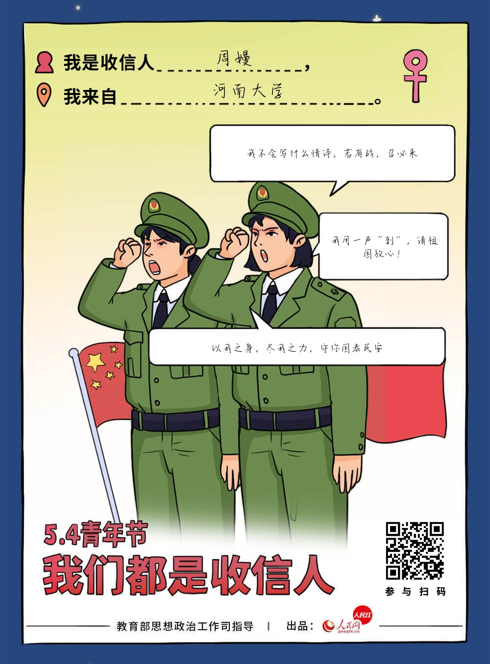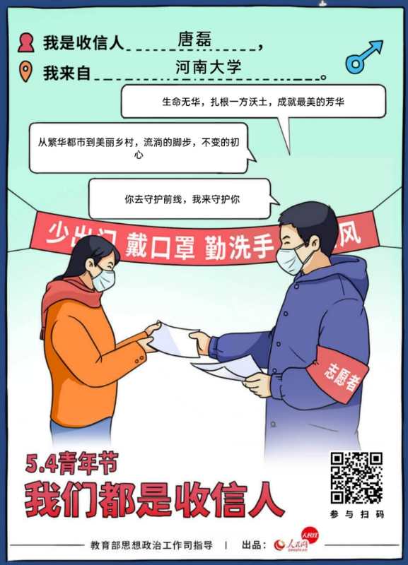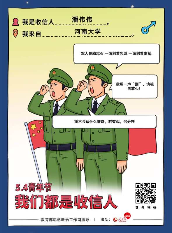 今天恰逢五四青年节,美术学院本科生第二党支部全体党员一起参与了“我们都是收信人”的接力活动,认真学习习近平总书记对青年的嘱托,对党员的期待,他们用行动作答青春,用实践放飞青春梦想。一起来看看他们的青春答案~