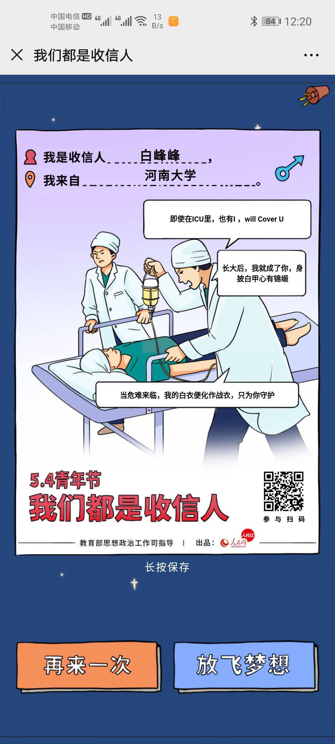 3月15日,习近平总书记给北大援鄂医疗队全体“90后”党员回信:“希望你们努力在为人民服务中茁壮成长、在艰苦奋斗中砥砺意志品质、在实践中增长工作本领。” 每一个追梦的你我,都是收信人!未来,你希望成为怎样的自己? 今天恰逢五四青年节,美术学院本科生第二党支部全体党员一起参与了“我们都是收信人”的接力活动,认真学习习近平总书记对青年的嘱托,对党员的期待,他们用行动作答青春,用实践放飞青春梦想。一起来看看他们的青春答案~ 本科生第一党支部中有很多毕业生党员,在这个特殊的毕业季里,他们在家创作别业设计、撰写论文,既思念着母校,也憧憬着毕业,想象着身穿学士服在大礼堂前、在博雅路上开心、自信、成熟的笑容,怀念着艺术楼自己奋斗过的每一个夜晚。毕业,既是远行,也是新的开始,愿他们初心不改,砥砺奋斗,在实现中国梦的路途上践行自己的人生梦想!