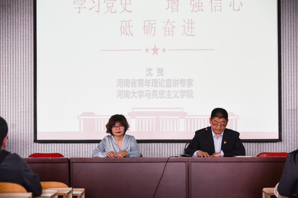 为引导广大师生更好地学习了解党的“红色历史”,深刻感悟中国共产党与中国人民之间的关系、中国共产党的初心宗旨,4月29日下午,河南省青年理论宣讲专家、河南大学青年讲师团宣讲专家、河南大学马克思主义学院副教授沈贺受邀来美术学院做专题宣讲,学院全体师生党员参会学习。会议由院党委书记杨江涛主持。