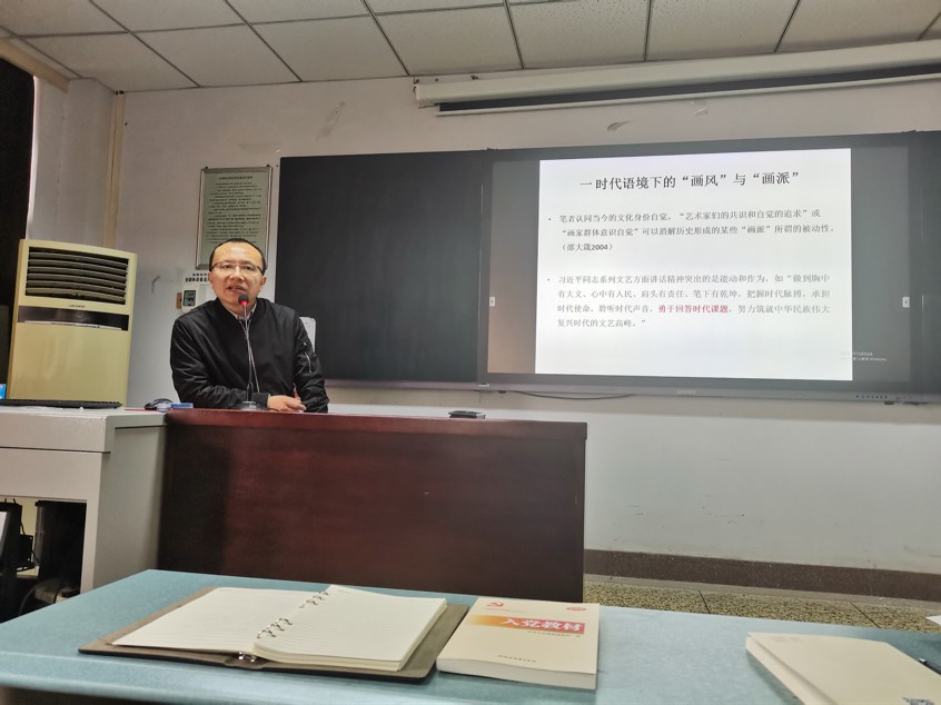 3月20日下午,在新艺术楼三楼多媒体教室,美术学院院长席卫权为全体入党积极分子做“不负厚土与时代——中原画风解读”专题讲座。