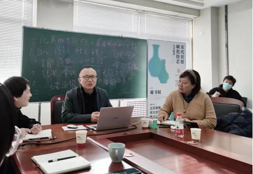 席院长鼓励学员们积极探索今后的学习、创作思路。他表示,本次项目方向上为“官瓷研究”,首要做到的就是研究透彻,第一,目标是造官瓷,这个官瓷是每一个学员心中的官瓷,要确立自己的艺术视角、研究视角。第二,提示学员们对“怎么表现官瓷?”进行思辨,针对“何种形式?何种内容?”思考解决方法和所需材料的问题等,帮助学员们保持问题意识。最后,结合展陈形式,思考作品与展示空间的关系,他鼓励学员们学习要做到有战略、有步骤、有章法。