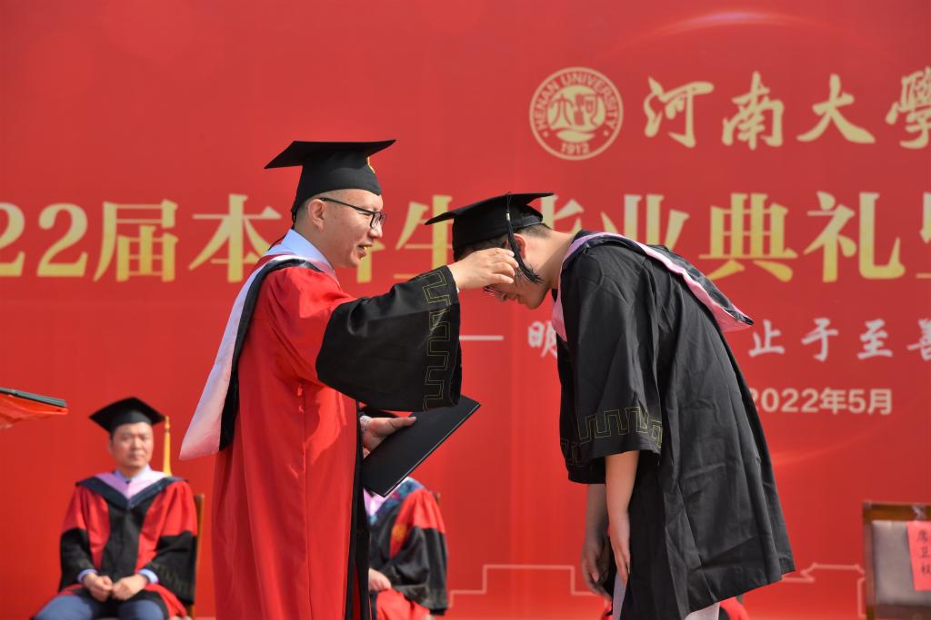 2018级辅导员靳利粉老师与毕业生代表,用一曲《再见》将现场气氛推向高潮。“嵩岳苍苍,河水泱泱……”,在《河南大学校歌》声中,毕业典礼暨学位授予仪式圆满落幕。千般思绪融在了转身的挥别中,“明德新民,止于至善”的校训将永远镌刻在每一位学子的心中。再见了,同学们!青春永不散场,“猗欤吾校永无疆”!