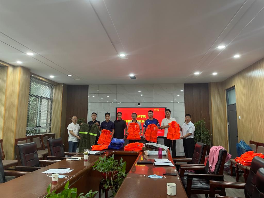 2022年6月9日下午3点半,美术学院在新艺术楼一楼会议室召开汛前隐患排查及安全工作会议,学院党委书记杨江涛、院长席卫权、副院长陈旭,防汛突击队全体成员参加会议。 陈旭传达学校《2022年防汛抢险救灾工作方案》精神,表示,要全面贯彻落实习近平总书记关于防汛救灾工作“坚持人民至上、生命至上,始终把保障人民群众生命财产安全放在第一位”的重要指示、河南省教育厅关于做好教育系统防汛救灾工作系列通知精神,全力防范应对即将出现的强降雨灾害天气,进一步做好学院防汛救灾工作,预防汛期发生特大汛情,保障全校师生生命财产安全。陈旭在会上进一步明确了美术学院防汛抢险责任区域划分,并对全体成员提出纪律要求。 杨江涛表示,此次会议既是防汛工作动员会,也是学院安全工作会议,他以一些典型的消防安全事件为例,警示同志们从中汲取深刻教训,做到警钟长鸣,居安思危。并对全体突击队成员提出以下几点要求:一要提高政治站位,增强防汛责任担当,要深刻汲取郑州“7·20”特大暴雨灾害教训,切实提高对防汛工作的思想认识,要时刻保持信息畅通,随时做好备战准备;二要要加强自身身体素质锻炼,加强对防汛救灾知识的学习演练水平,提高防汛能力和水平;三要加强暑期安排排查,以办公楼、教学楼为中心,进行全面排查,确保暑期学院安全稳定。 席卫权表示,今年汛期形势依然严峻,希望全体成员在思想上、行动上做好充分准备,用大概率思维应对极端天气和极有可能发生的重大自然灾害,立足防大汛、抢大险、救大灾,来之能战,战之能胜,全力守护师生生命财产安全。 随后,全体人员一起观看学习了《生命重于泰山》《防汛小知识》等宣传片。 最后,杨江涛、席卫权为全体成员发放雨鞋、雨衣、铁锹、救生衣等防汛装备。
