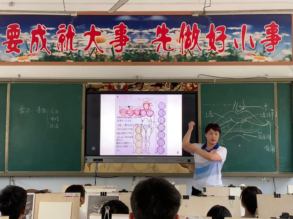 近日,美术学院选派肖海英副教授、陈政副教授、胡冰副教授等三位教学经验丰富的专业教师,利用暑期在河南大学潭头附中开展“抗战办学·感恩助教”艺术支教活动。