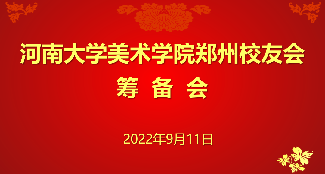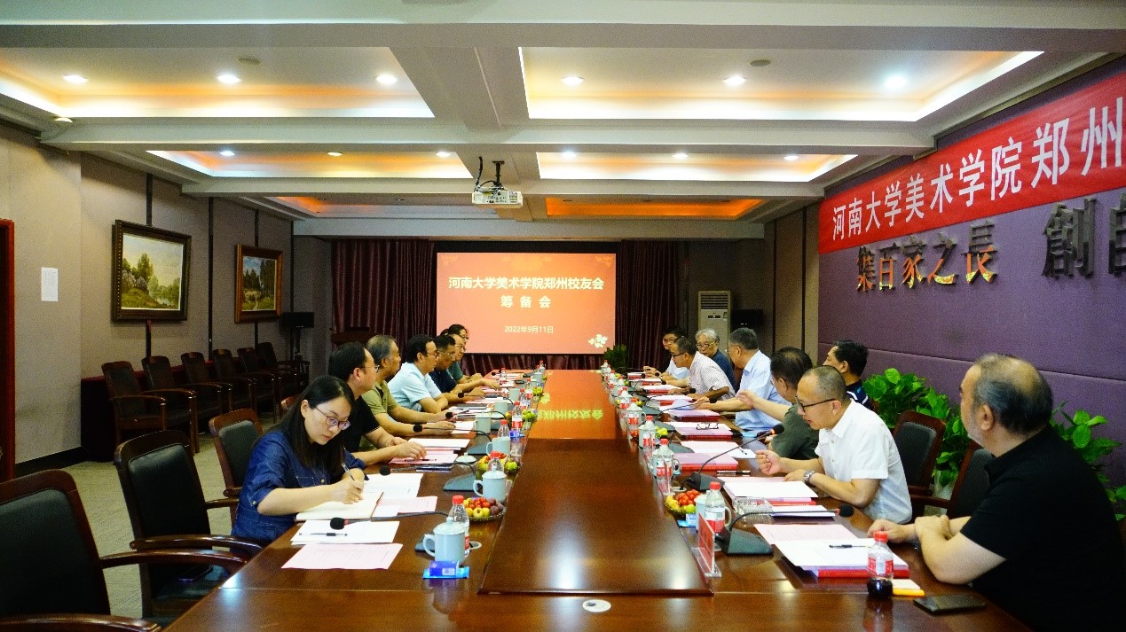 2022年9月11日,恰逢中秋佳节,河南大学美术学院在郑州轻工业大学易斯顿美术学院召开郑州校友会筹备工作会议。与会者有:中国画学会副会长、河南省文联、美术家协会名誉主席、河南大学美术学院名誉院长马国强,河南大学校友总会副秘书长魏春吉,河南省书法院原院长、河南省书法家协会顾问李强,河南省美术馆原馆长、河南省美术家协会顾问化建国,河南省美协设计艺委会副主任、郑州市创意装饰设计有限公司总经理、艺术总监胥昌群,郑州轻工业大学易斯顿美术学院院长石品、郑州轻工业大学易斯顿美术学院副院长王远、杨钢,河南盛丰有限公司法人、董事长田海军,河南大学艺术学院原院长、河南省书法家协会顾问赵振乾,河南大学美术学院党委书记杨江涛、副院长马利霞,会议由美术学院院长席卫权主持。