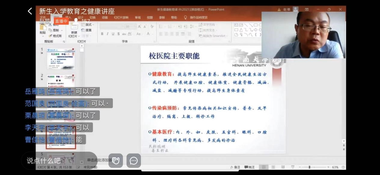图4-6:校医院副院长张书申通过钉钉课堂给大家进行健康讲座。