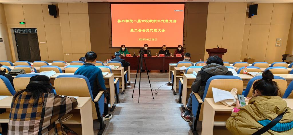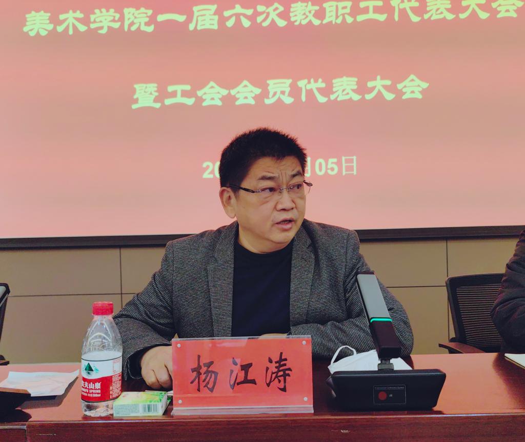 1月5日下午15时,美术学院一届六次教职工代表大会暨工会会员代表大会在新艺术楼405教室召开。教师代表以线下、线上相结合的方式参加,会议由美术学院党委书记杨江涛主持。