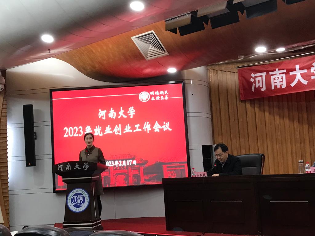 2月17日上午,河南大学2023年就业创业会议在行政楼249会议室召开,此次会议总结学校2022年度就业创业工作,表彰先进,安排部署2023年就业创业工作的推进。美术学院荣获2022年度就业创业工作二等奖,靳利粉老师被评为“就业创业先进个人”。 美术学院靳利粉作为先进个人代表之一,分享其工作经验。靳利粉在发言中表示,我院高度重视毕业生就业的情况,全方位展开就业指导工作,从学生的方方面面入手,因材施教,进行针对性的就业指引,召开毕业生就业工作专题会议,帮助学生了解就业政策和形式,精确完成就业工作。针对学生不同选择精准指导,邀请就业指导中心老师,重点企业HR进行针对性指导服务,鼓励学生参加宏志助航计划,基层就业等专项就业规划活动。构建完善的就业育人体系,全体教师,知名校友,学校就业指导中心全员参与,全方位推动,协同合作,为毕业生提供高质量服务。同时坚持离校不离心,服务不断线,为已毕业学生提供良好服务。 我院从始至终高度重视毕业生就业创业工作不断优化指导服务,关注帮扶特殊群体,落实工作责任,积极进行与各学院协调配合工作,营造良好的氛围支持毕业生就业创业,坚持凝心聚力、精准施策,不断提升就业指导和服务水平,为高质量完成我校2023届毕业生就业创业工作目标任务奋斗前行。 明德立人育英才,鼓足干劲争上游。美术学院将继续全力以赴提升教育教学水平,不断完善教育机制,培养学生的全面发展,适应社会高标准的用人要求。加强就业指导队伍建设,提高服务质量,为毕业生树立正确的创业就业观,帮助毕业生解决就业难题,为毕业生创业就业保驾护航。